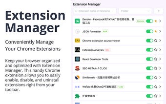 Extension Manageris a free software for Chrome, that makes part of the category 'Add-ons & Tools'.